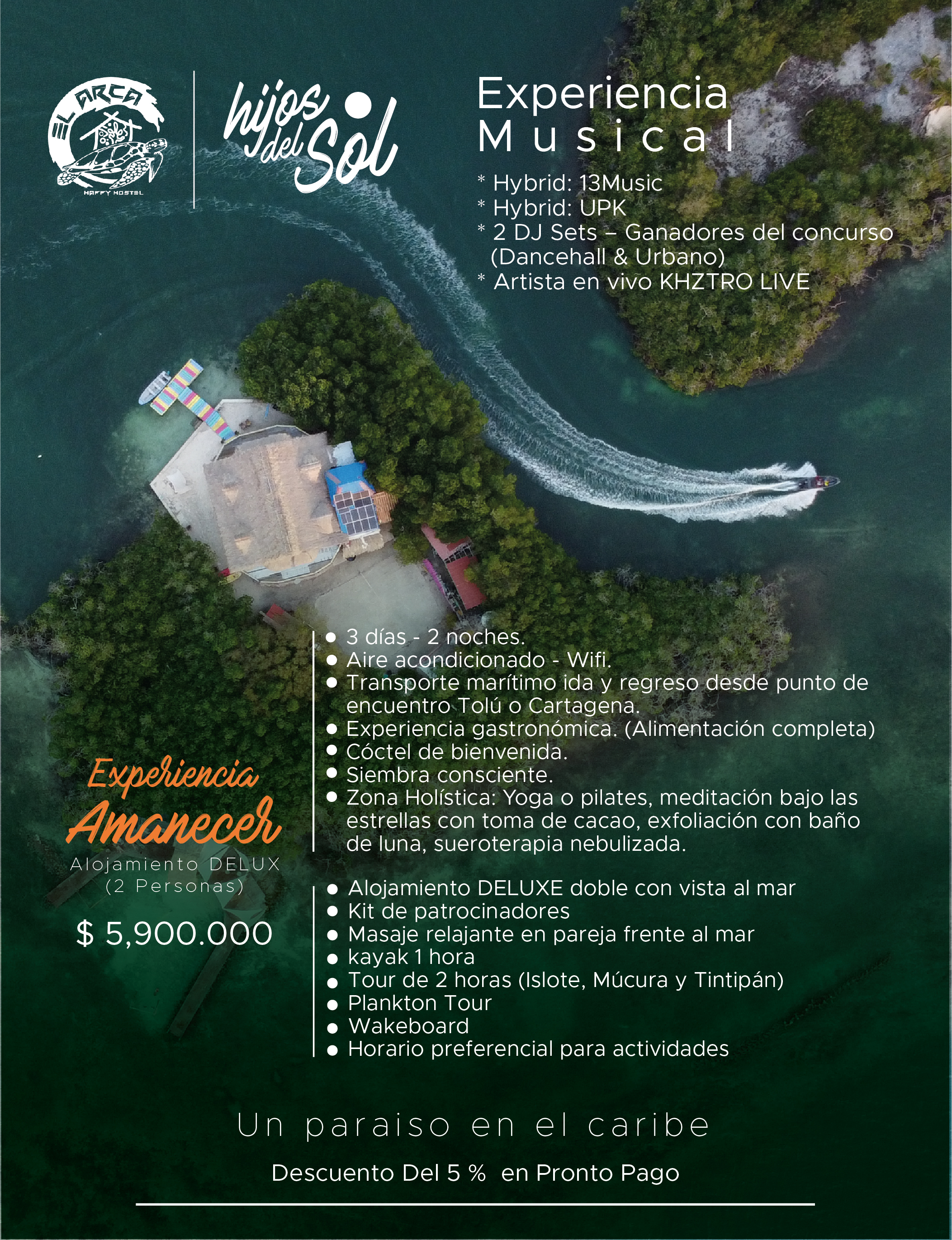 En el corazón del Caribe, donde el mar se funde con el cielo, existe un lugar mágico: El Arca. Una isla única, rodeada de aguas cristalinas y una energía que se siente en cada rincón. Aquí, el tiempo se detiene y la naturaleza te invita a reconectar contigo mismo.